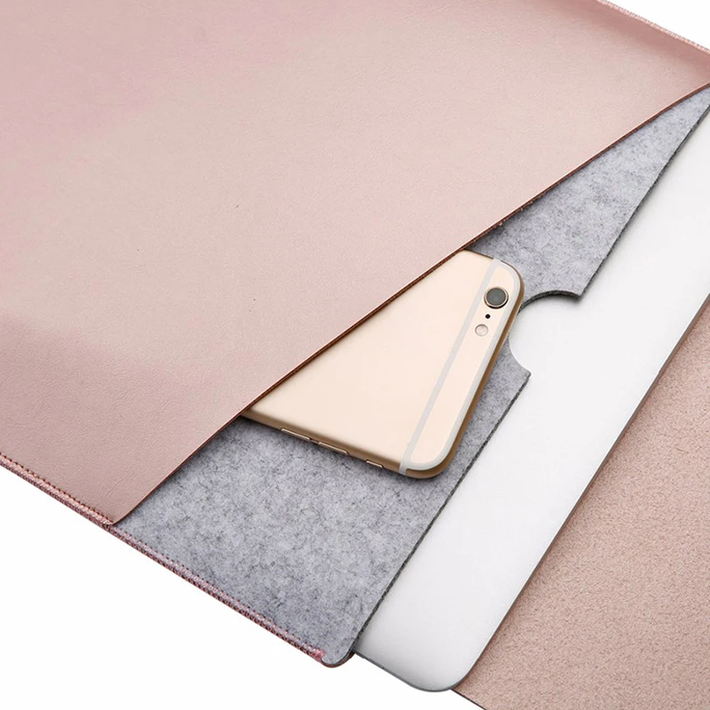 Beste Koop Soft UP Leather Vilt Waterdichte Muismat Sleeve Case 11 12 13 15 Notebook Voor MacBook Air Pro 13.3 15.4 dubbele laag laptop Tas Goedkoop